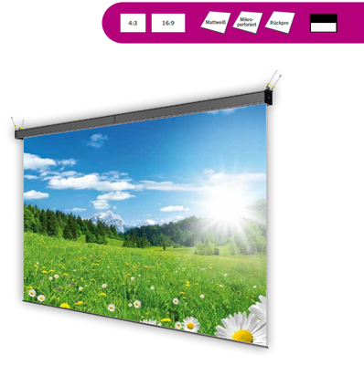 - Variabel einstellbare Designs: Motorleinwände sind in verschiedenen Größen und Formaten erhältlich, sodass sie an die Gegebenheiten Ihres Raums angepasst werden können.